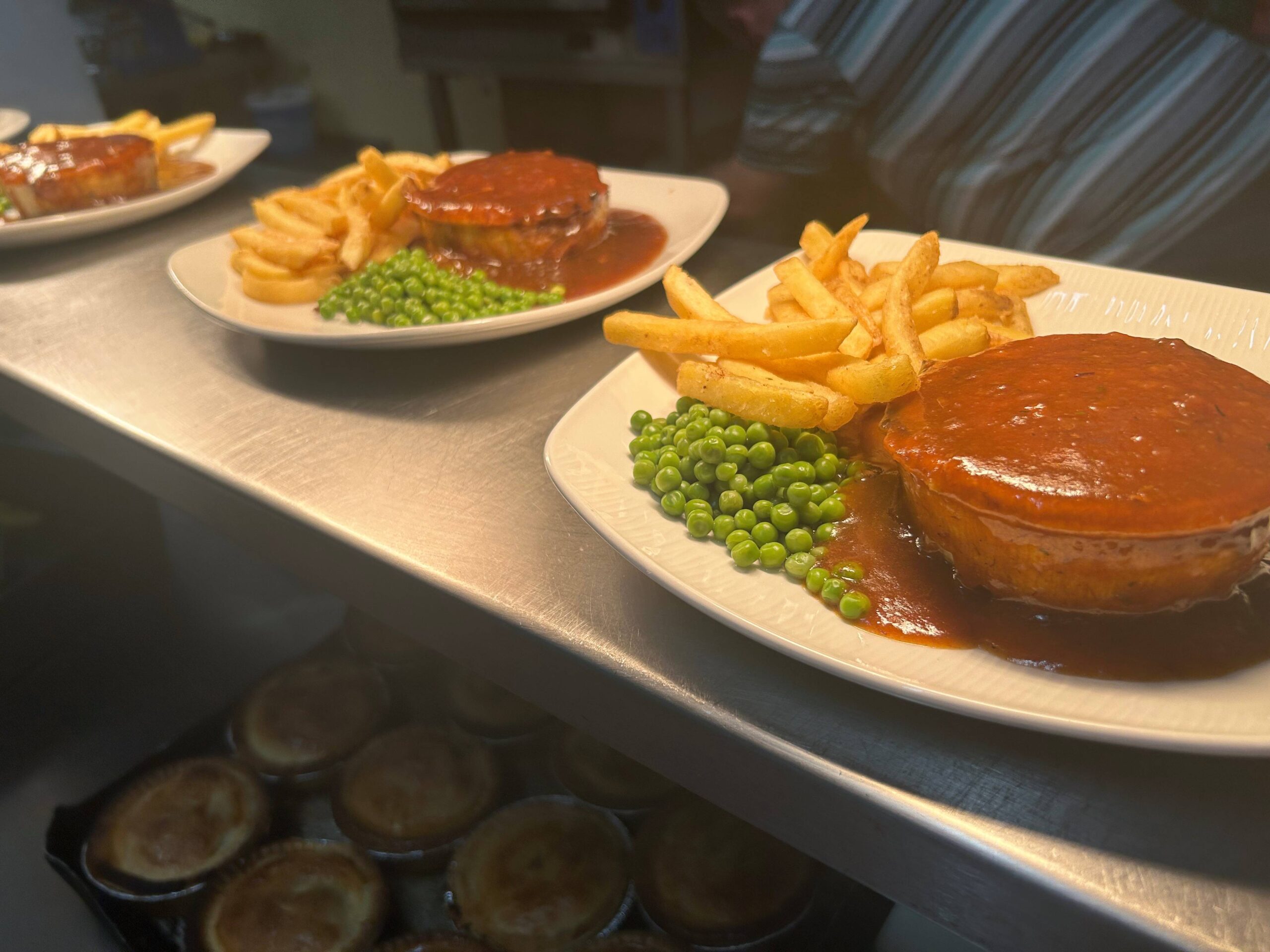 Ask your server for today’s choice, served with chips or mash and peas.