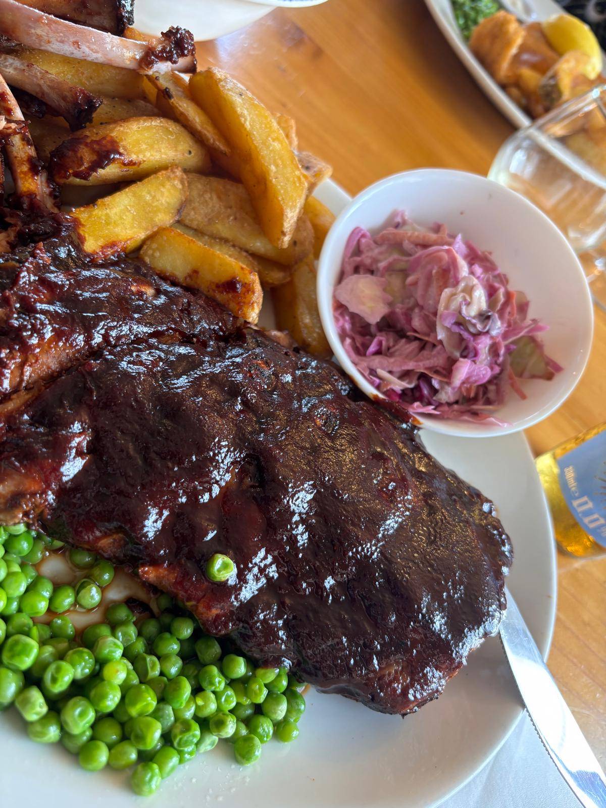 Ask your server for today’s choice, served with chips or mash, and peas