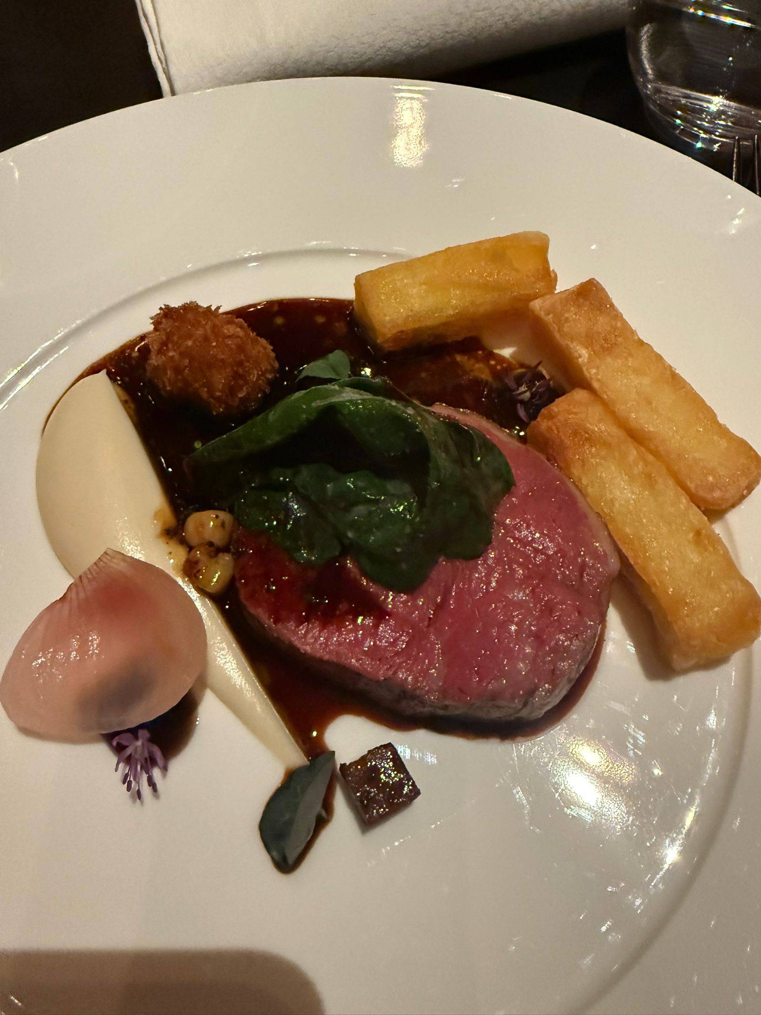 Ask your server for today’s choice, served with chips tartare sauce and mushy or garden peas